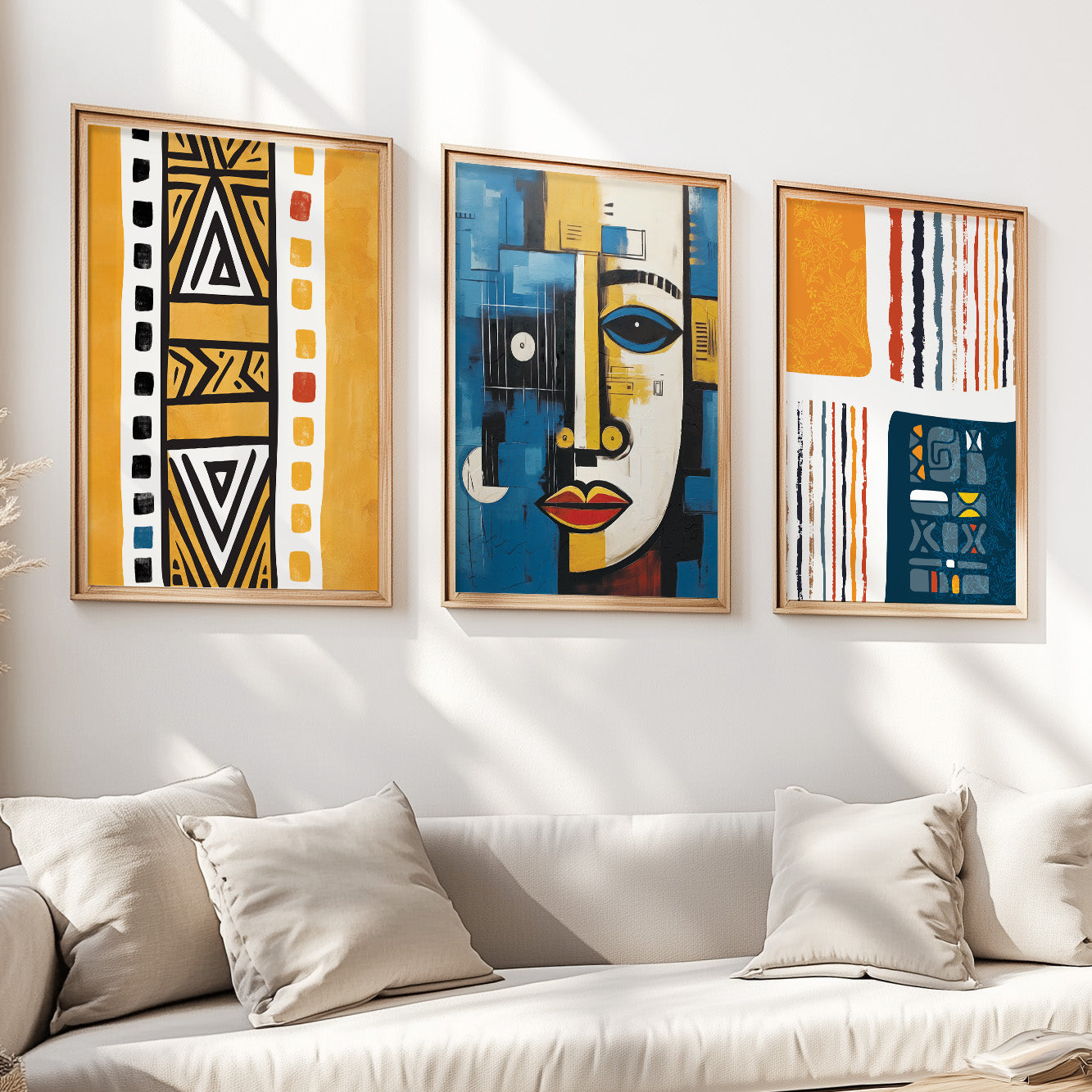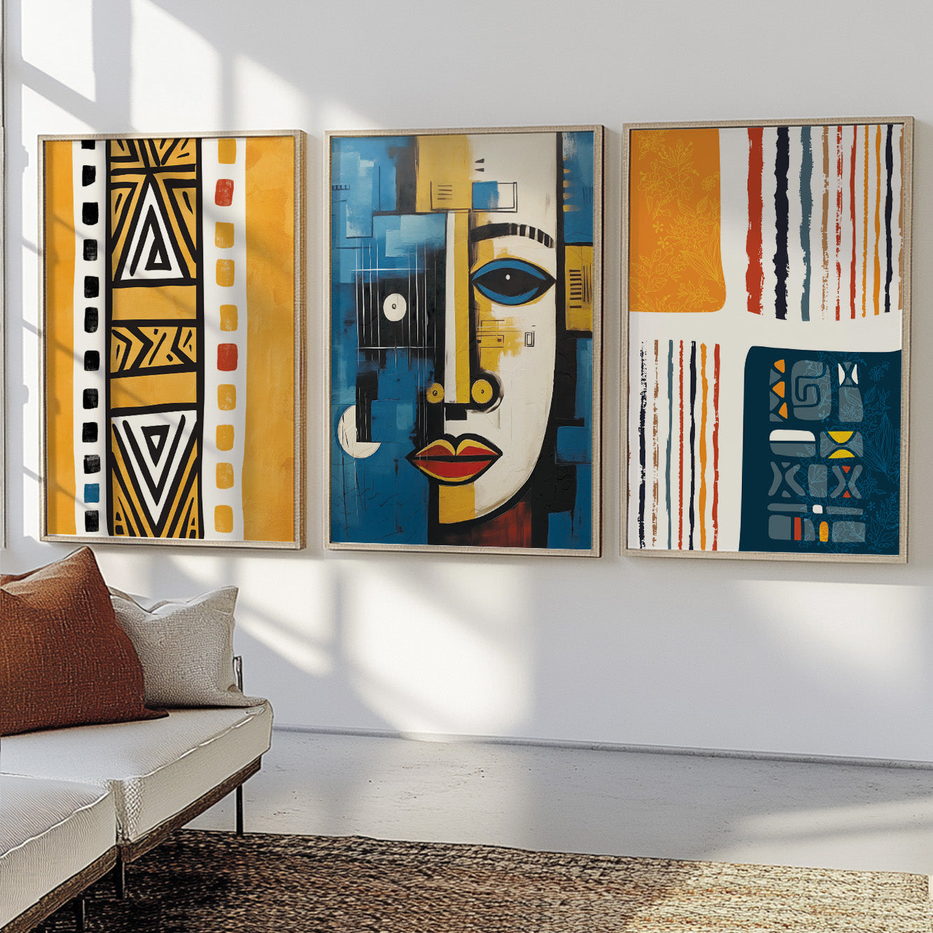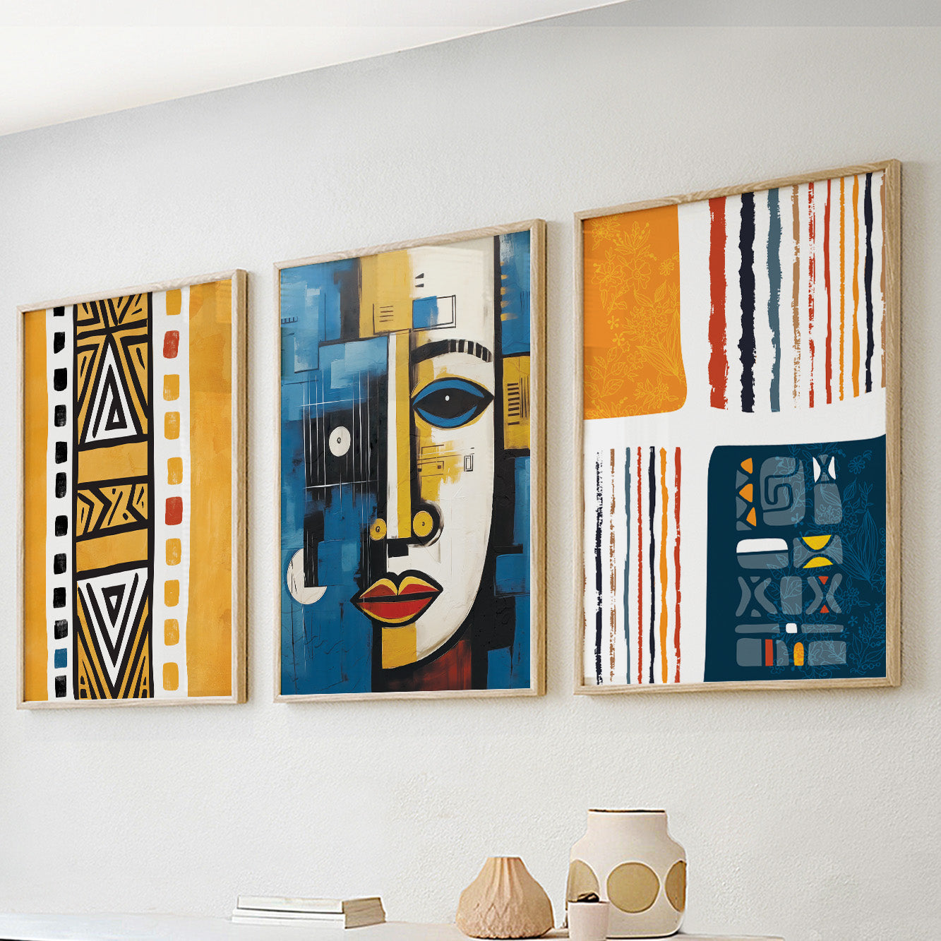 Navy Blue & Yellow African Art Set of 3 – Abstract & Ethnic (USA)