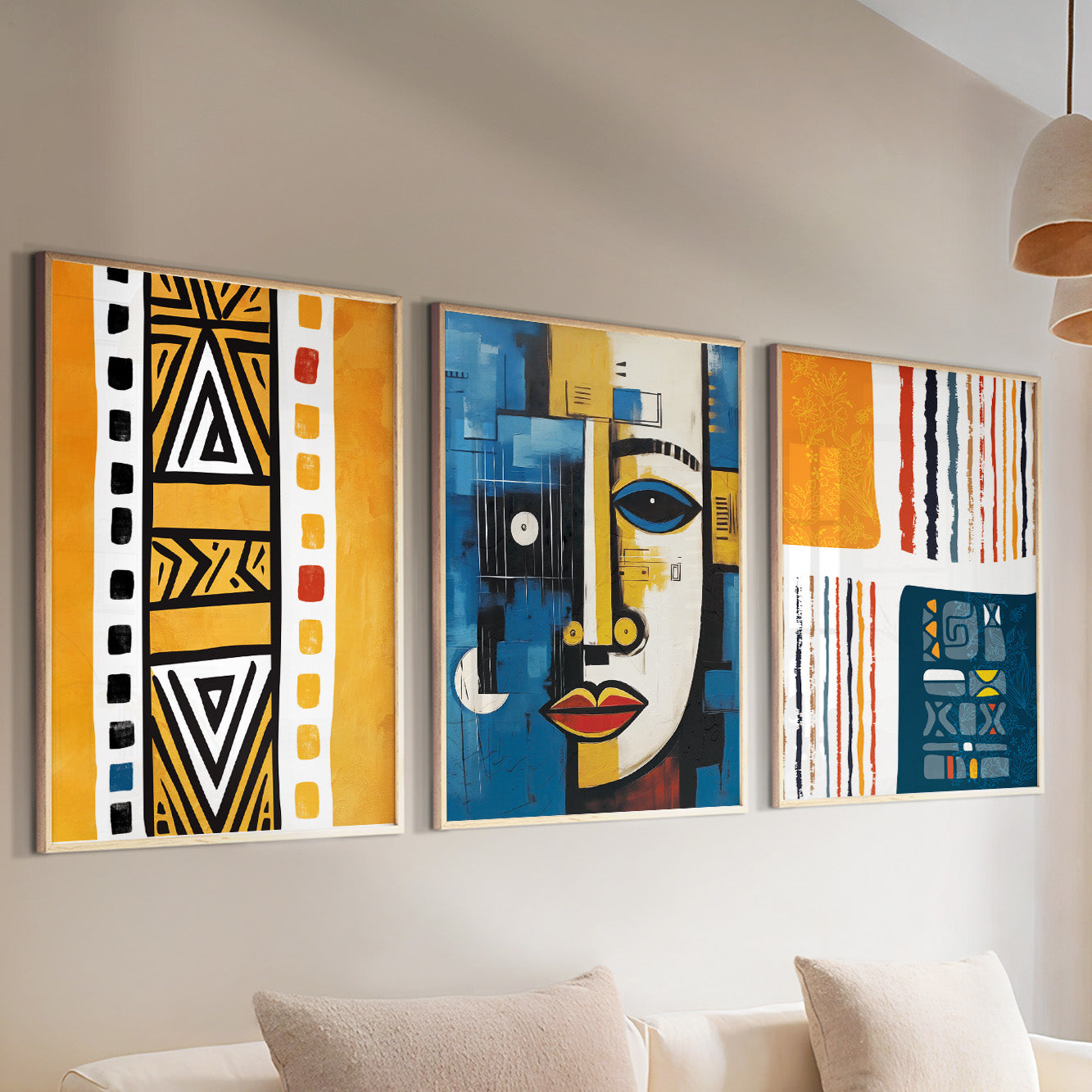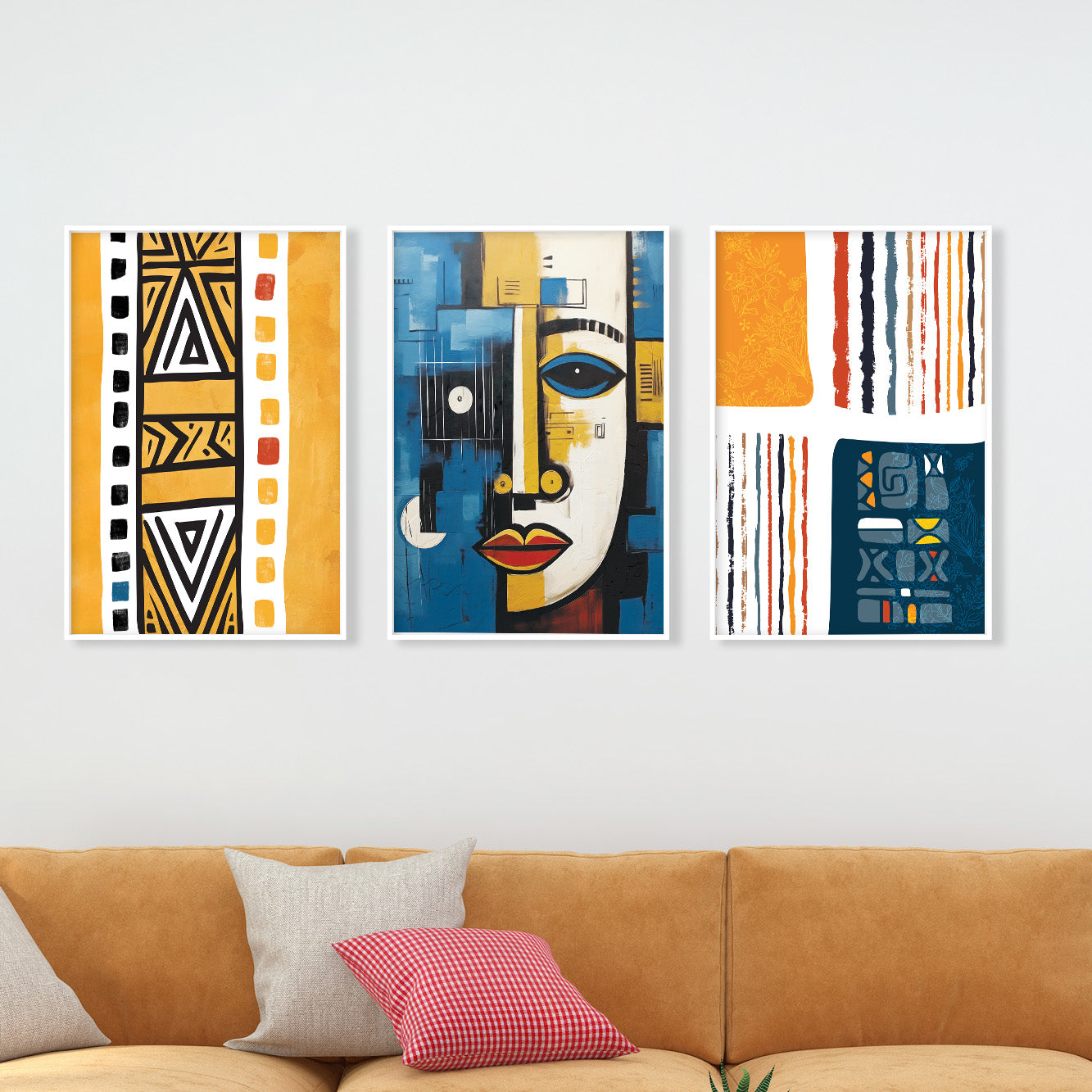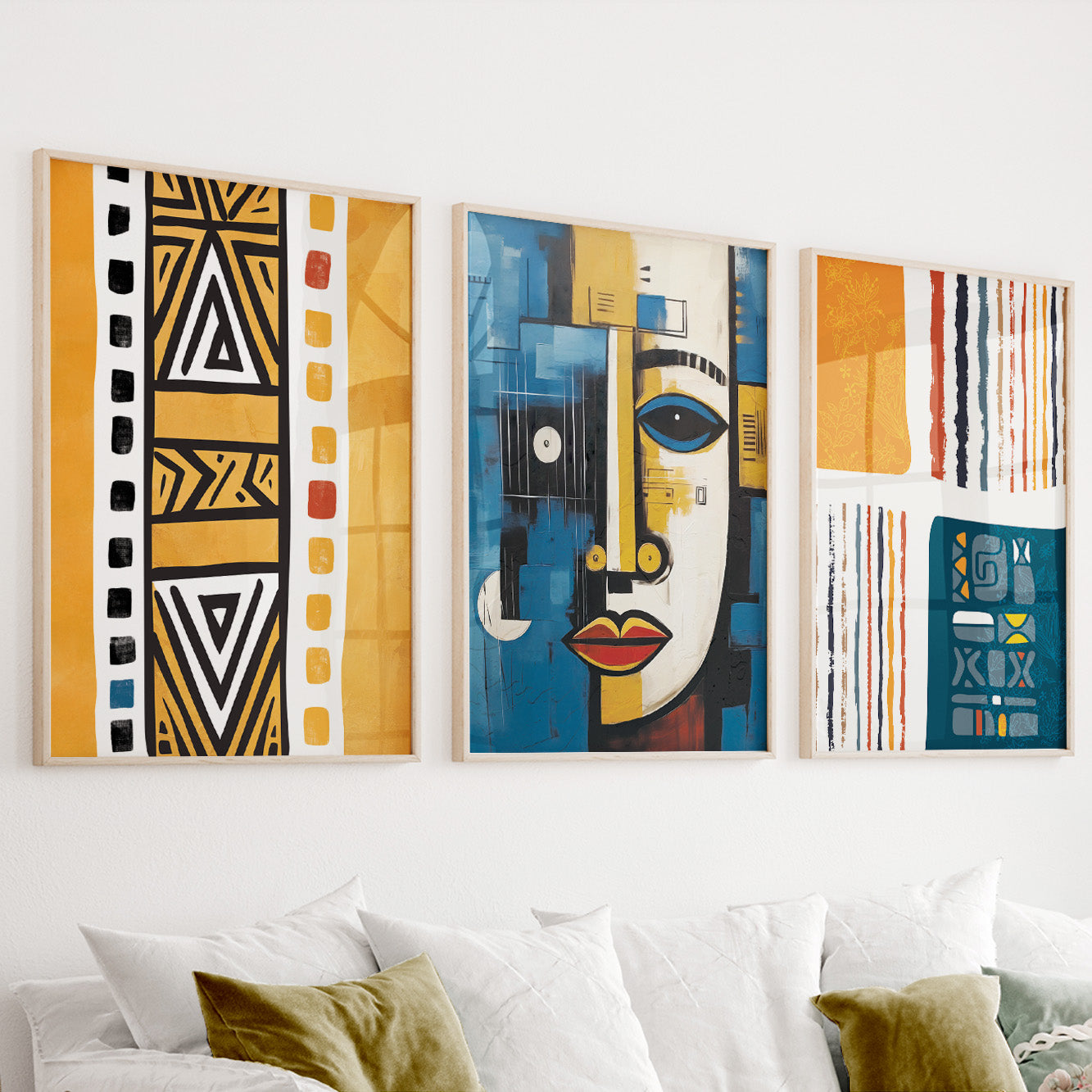 Navy Blue & Yellow African Art Set of 3 – Abstract & Ethnic (USA)