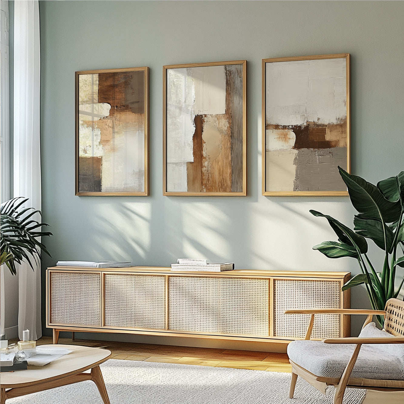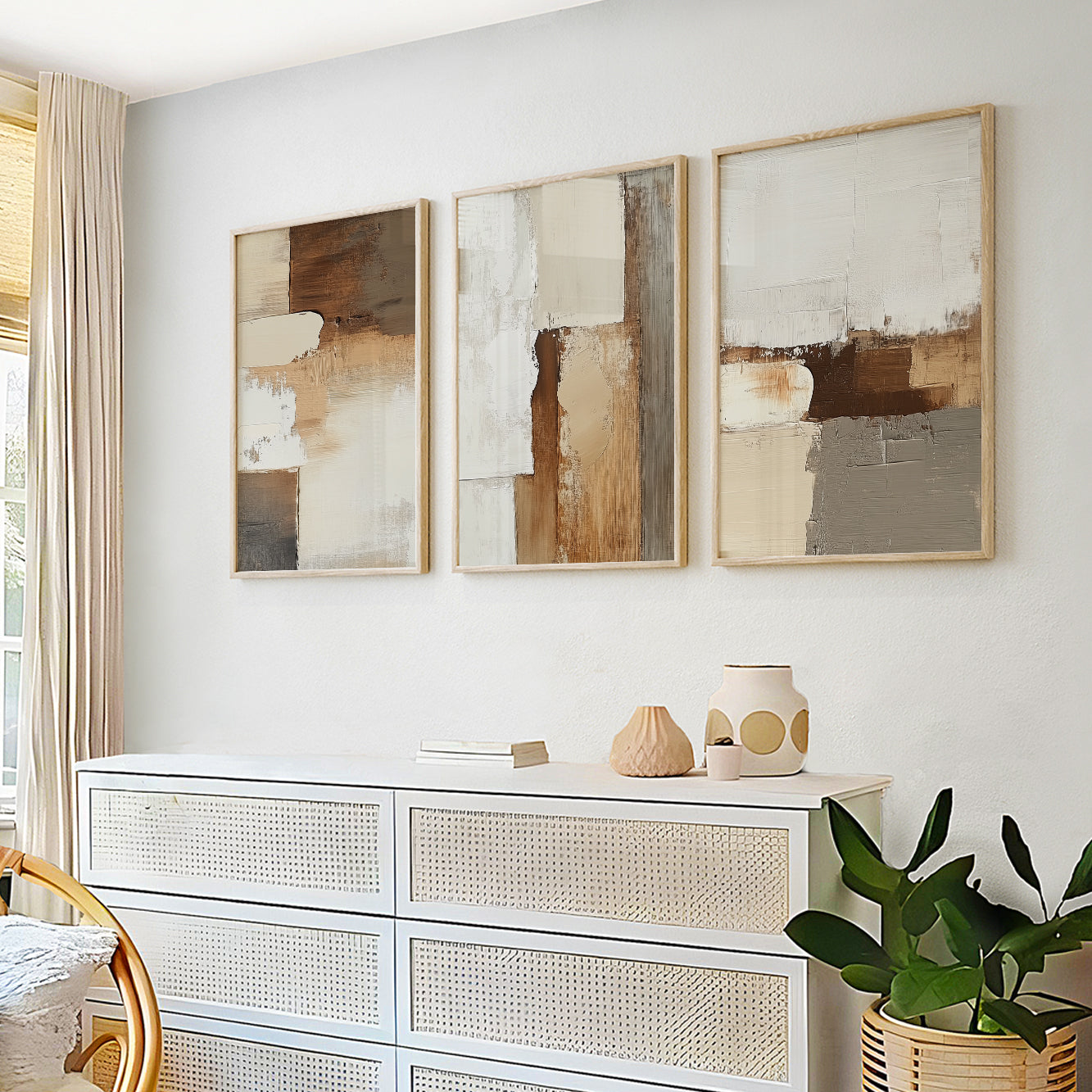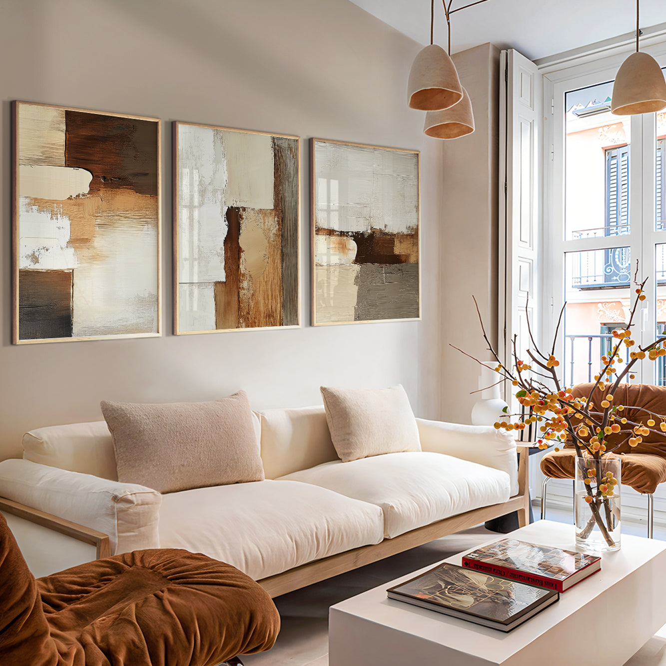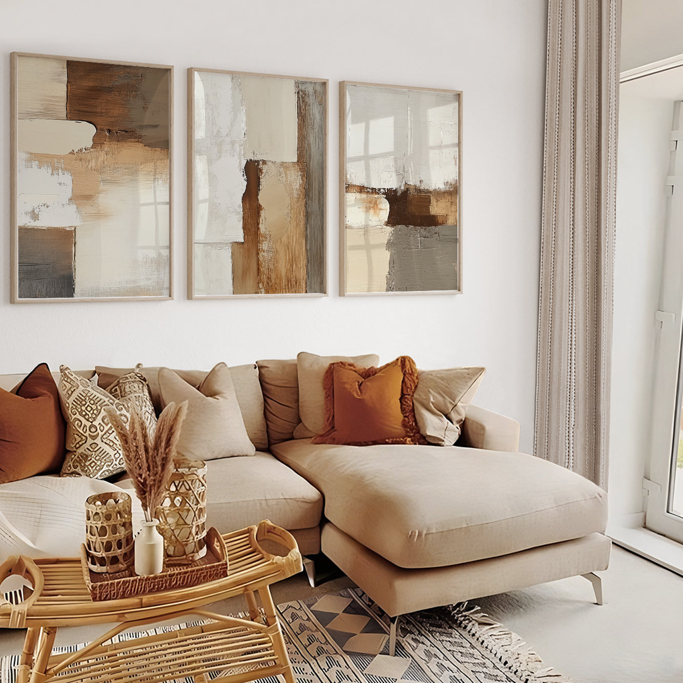 Neutral Earth Tone Set of 3 – Terracotta Beige Minimalist Art (USA)