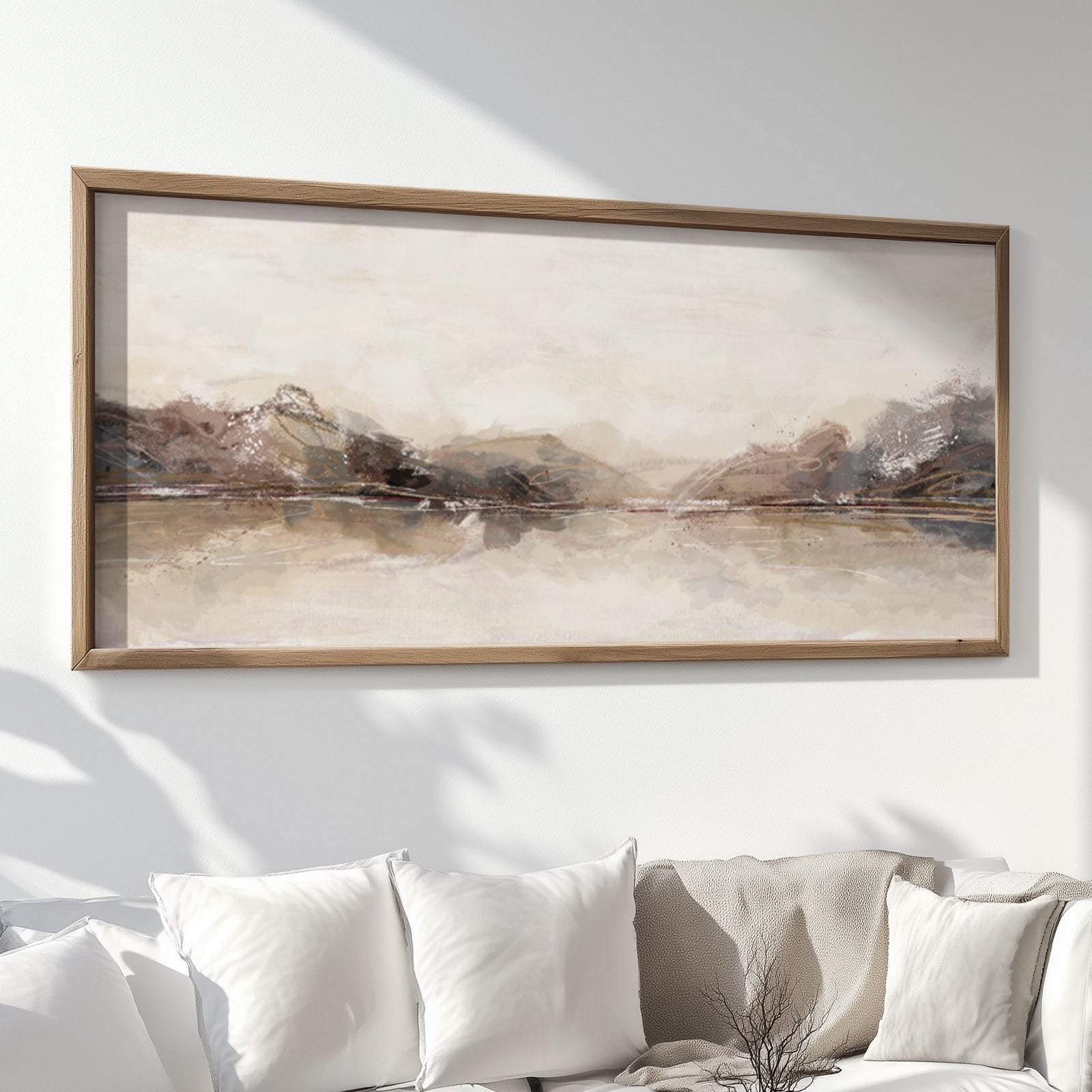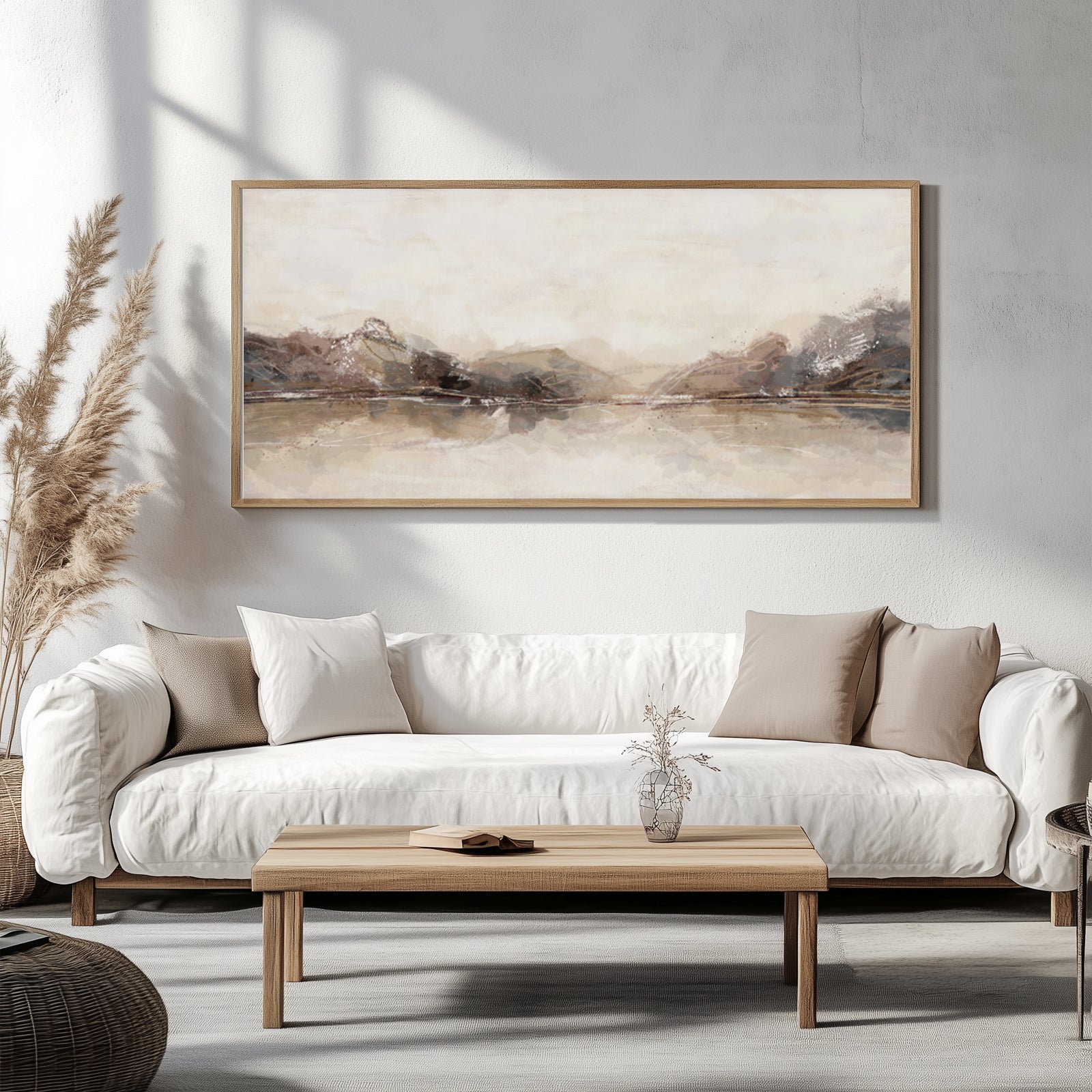 Panoramic Neutral Abstract Art – Minimalist Beige Japandi Print